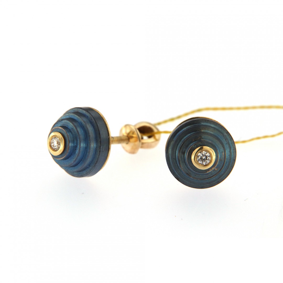 Subtilūs, bet itin dailiai su šviesa žaidžiantys titano auskarai, savo kintančiu mėliu užburiantys net išrankiausią akį. Auskarų karūnėlėje esantys laiptai, kylantys aukštyn, žvilgsį nuveda link prabangiai žibančio brilianto.
