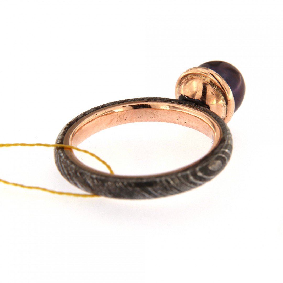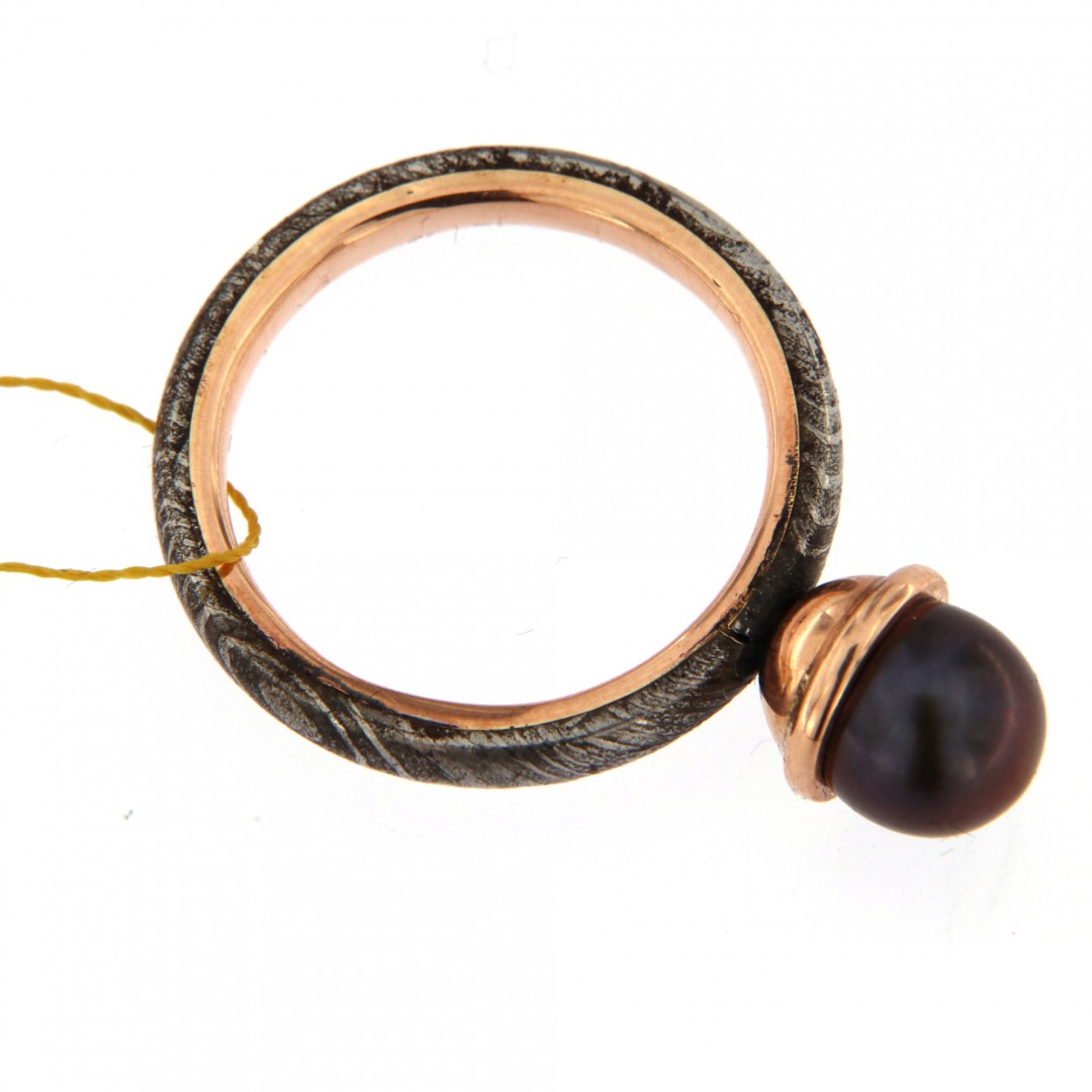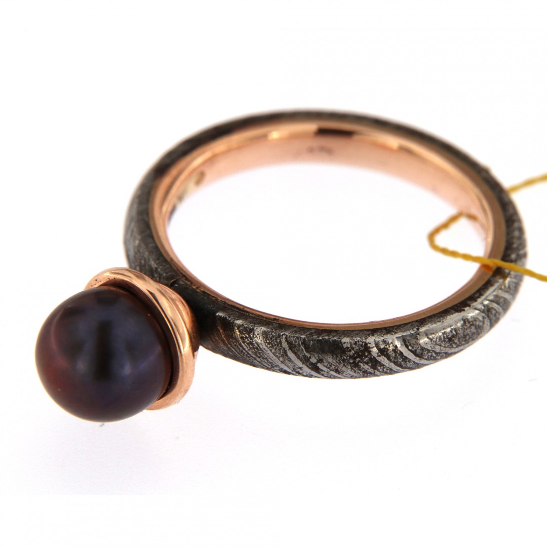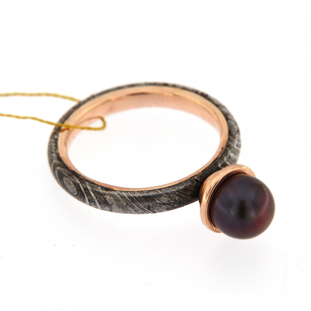 Damasko plienas, raudonas auksas (585 praba), kultivuotas perlas.