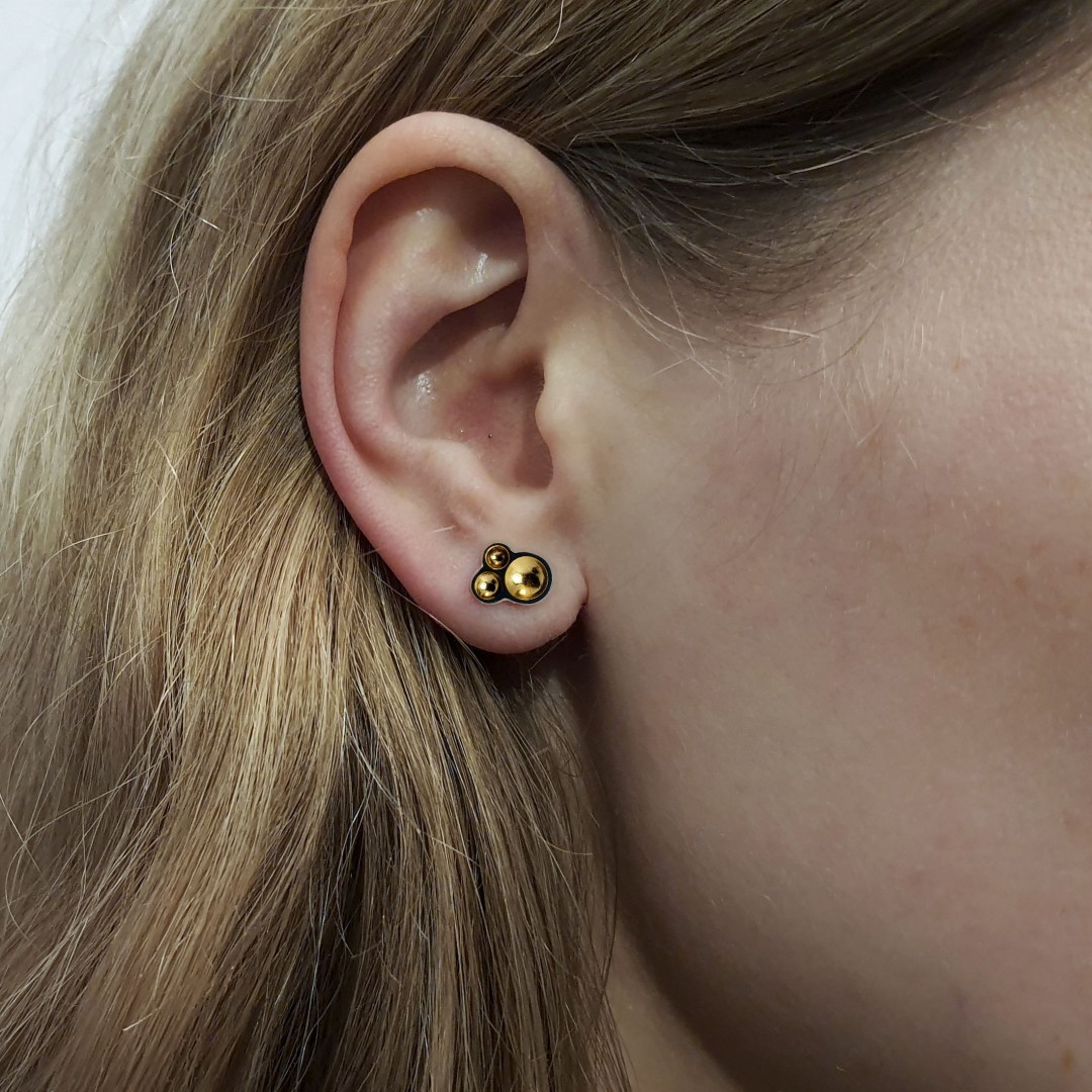 Abstraktaus dizaino sidabriniai auskarai, oksiduoti ir dengti grynu auksu.