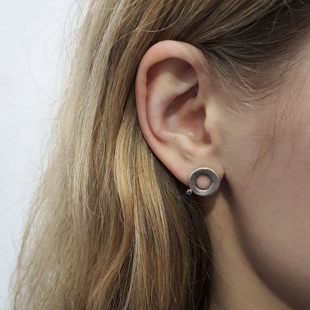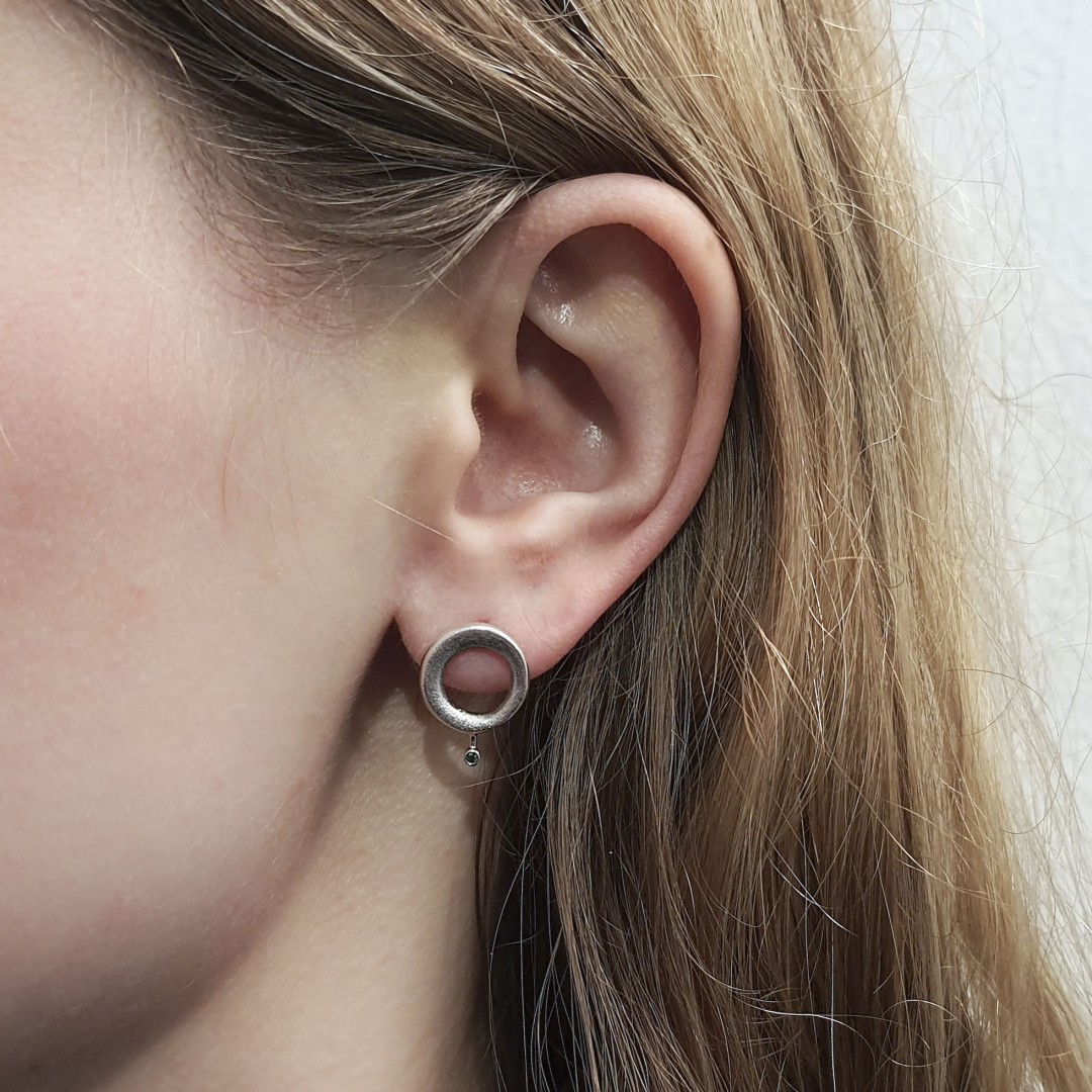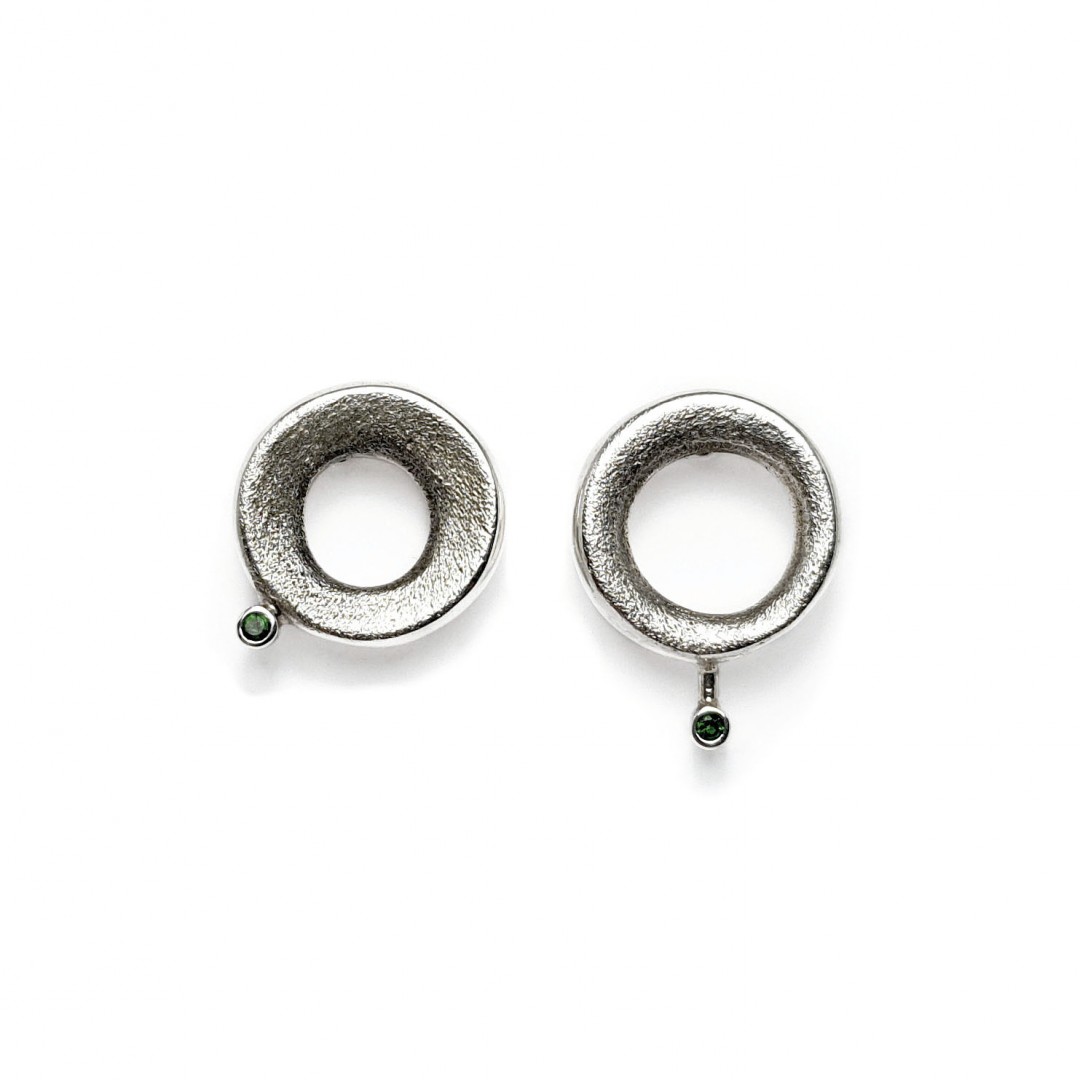 Apvalūs sidabriniai auskarai su tsavoritais (žaliais grantatais).