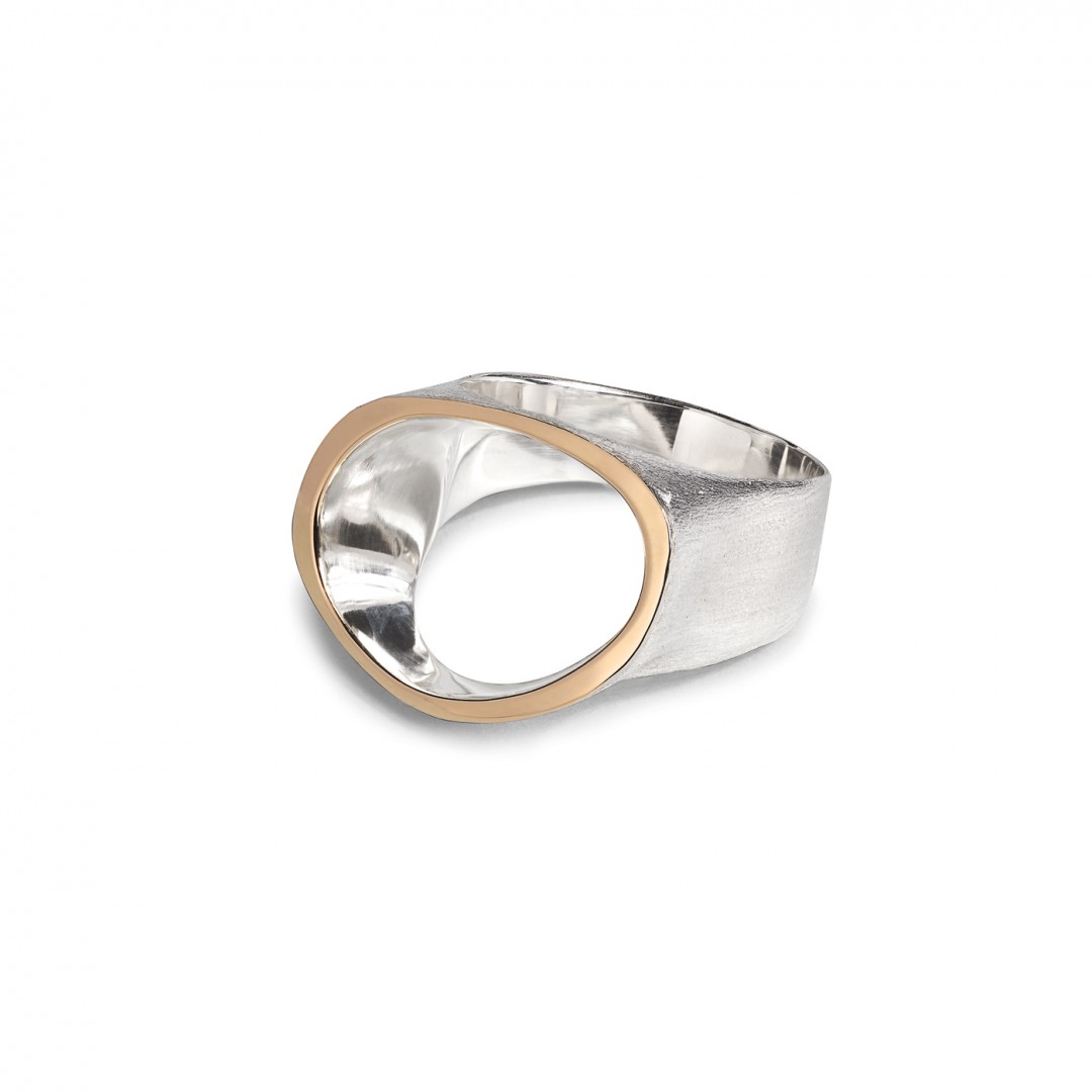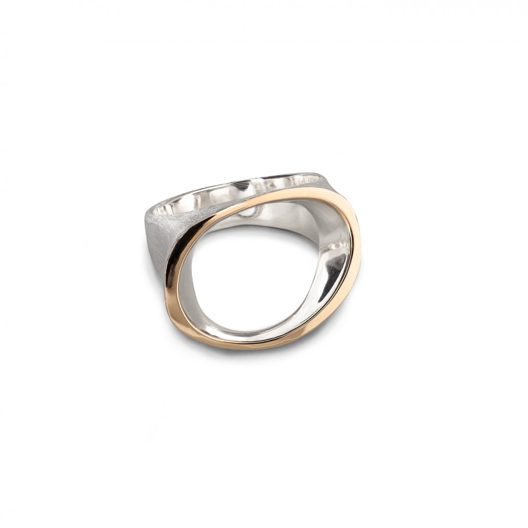 Faktūruoto matinio sidabro žiedas su blizgia poliruoto aukso detale.