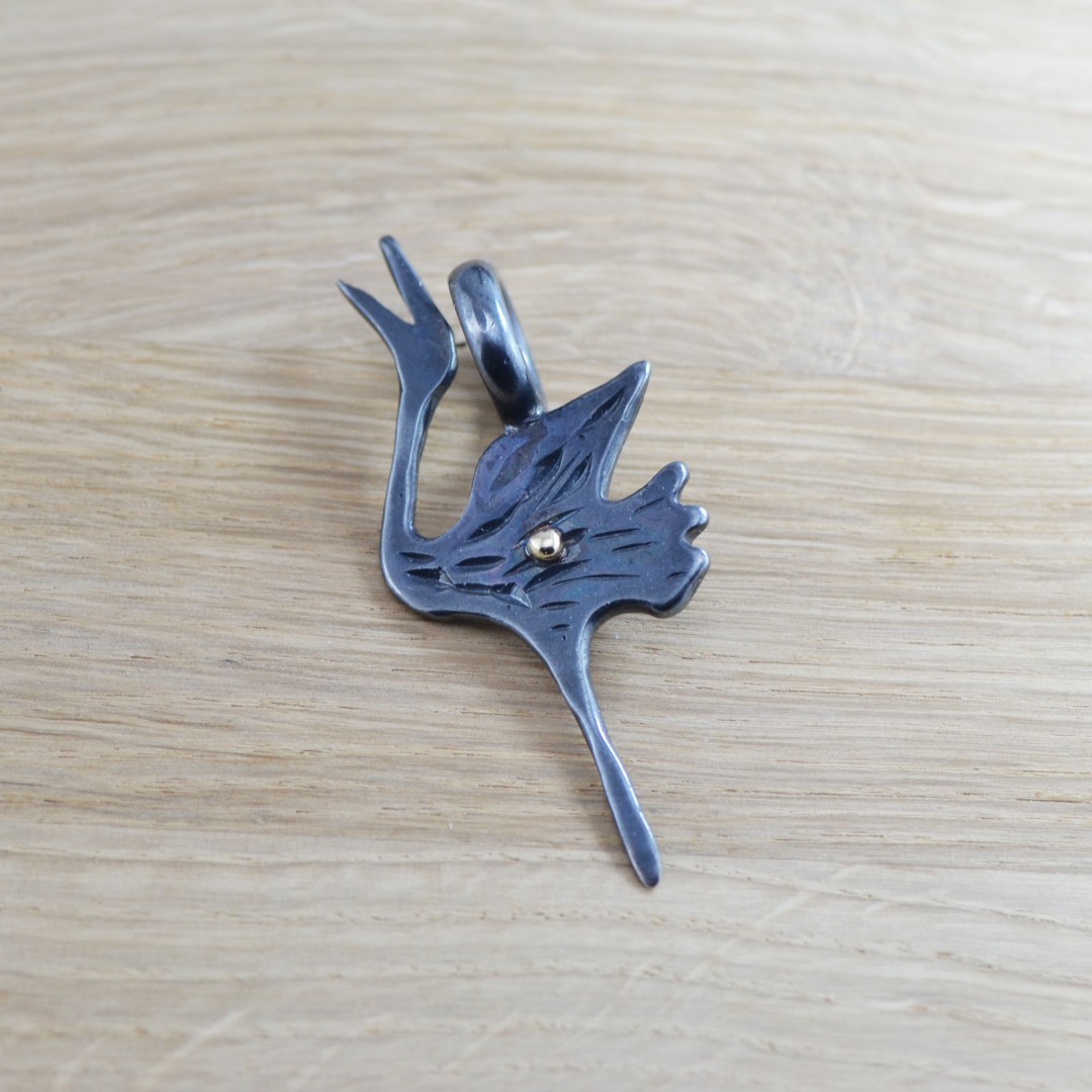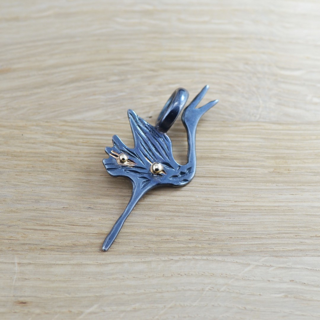 Pakabukas - Gervė (Auksas 585, Juodintas sidabras 925)