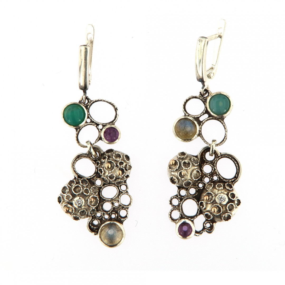 Sidabras 925, auksas 585, ametistas, labradoritas, avantiūrinas, cirkonis.