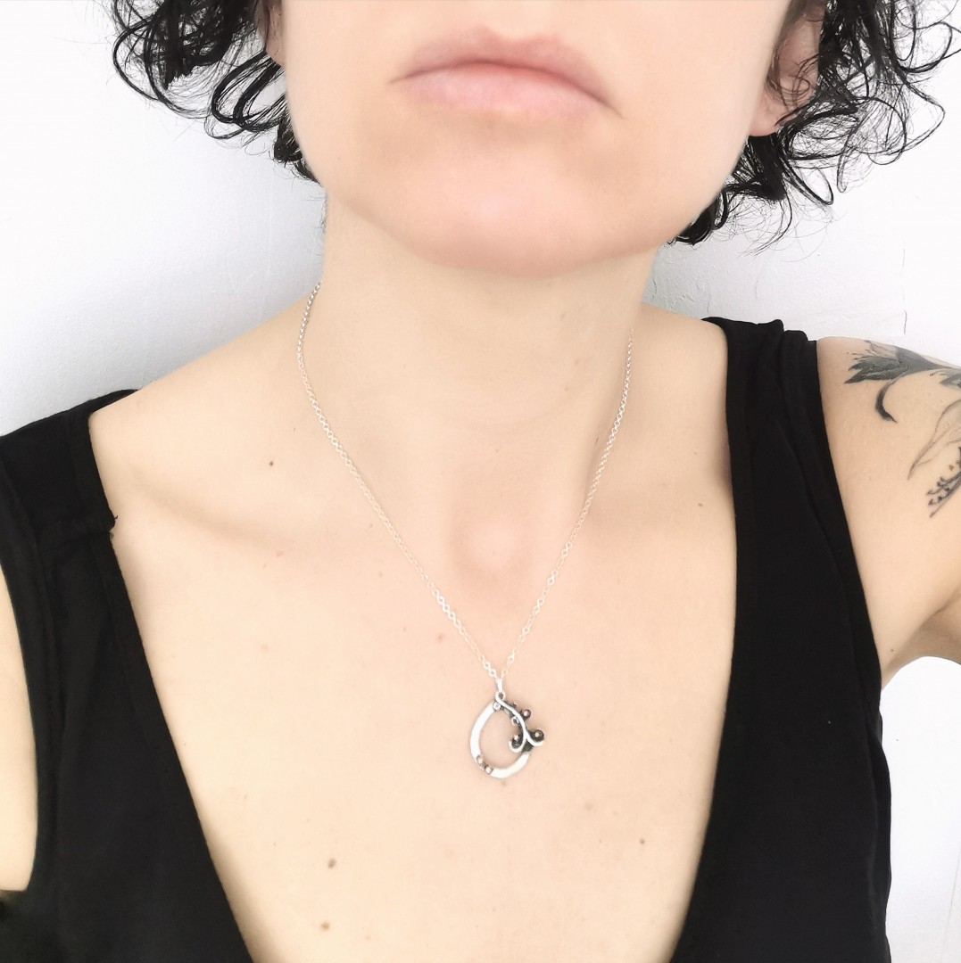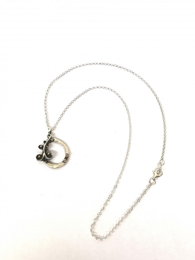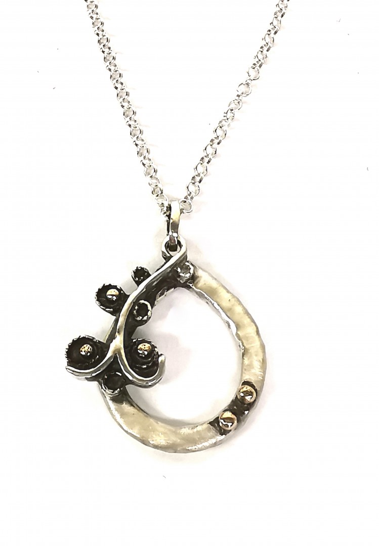 Sidabrinis pakabukas su rūtos šakele, puoštas aukso granulėmis.