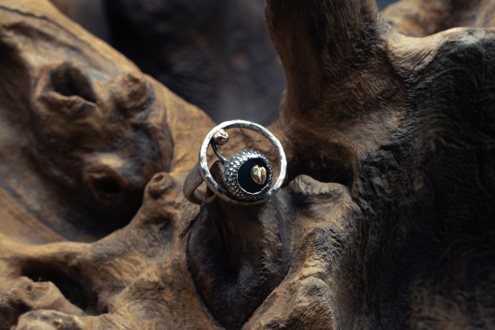 Medžiagos: sidabras 925(oksiduotas), aukso granulės