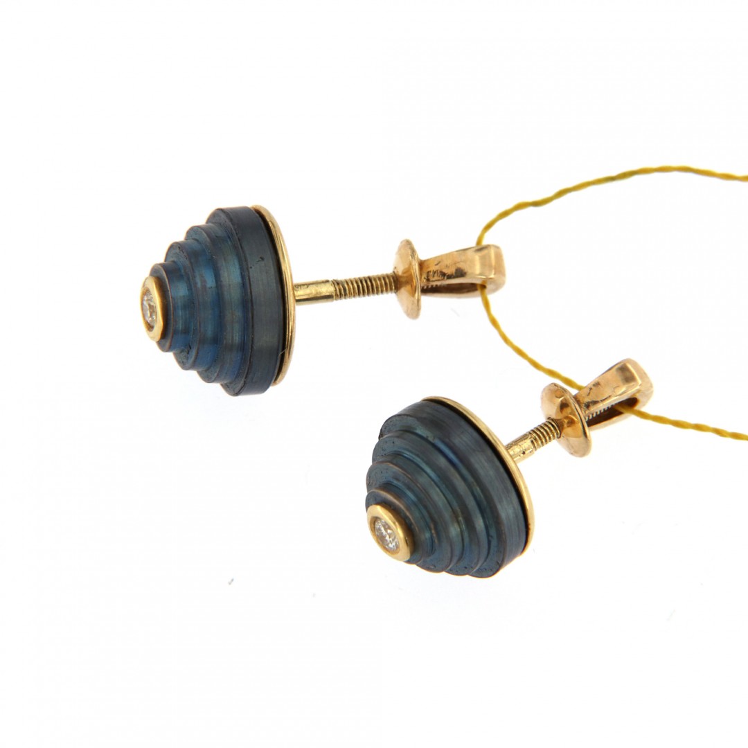 Subtilūs, bet itin dailiai su šviesa žaidžiantys titano auskarai, savo kintančiu mėliu užburiantys net išrankiausią akį. Auskarų karūnėlėje esantys laiptai, kylantys aukštyn, žvilgsį nuveda link prabangiai žibančio brilianto.