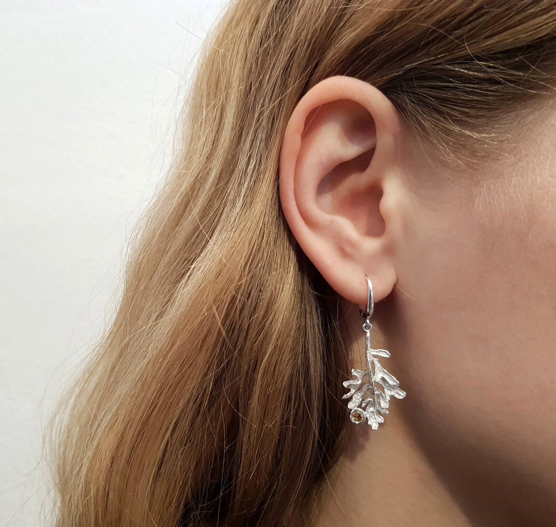 Gaivų pavasarį primenantys sidabro auskarai su natūraliais citrinais.
