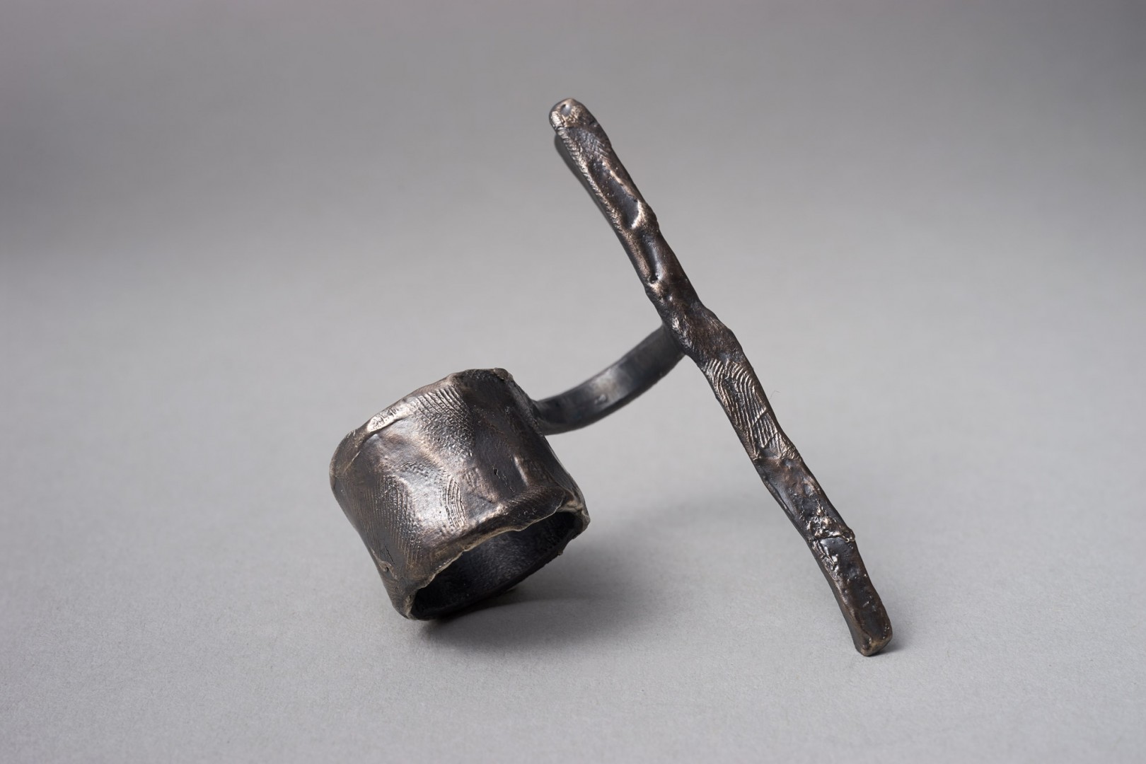 Faktūruoto matinio ir oksiduoto sidabro žiedas dviems pirštams.